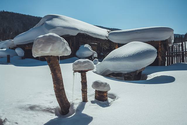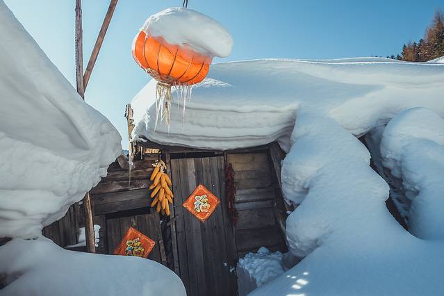 雪乡的很多房子都算得上是老房子,房子外面都有用木栅栏围起来的小院,不规范但写意,无迹可寻但律动感十足。而当这栅栏在积雪的装饰下裹上外衣之后,吃货的我只想到那些可口的冰棍。这不由得让我想起“老铁”的称呼的由来,我也充分的理解了,为什么面对着这些冰冷的物体,很多小孩子会忍不住伸出舌头去舔一舔。