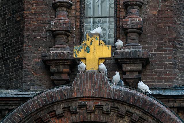 初时是沙俄的一座随军教堂,后来在此基础上修建了一座全木结构教堂,1911年又在外面砌了一层砖墙,形成了砖木式结构。