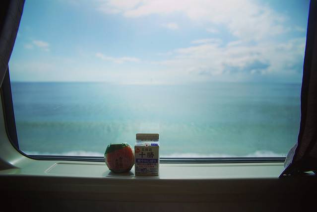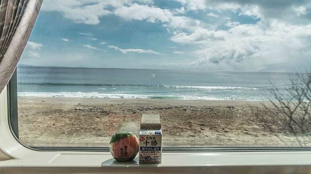 即将离开洞爷湖前往函馆,一路沿海的火车,2小时40分钟,却舍不得睡觉。