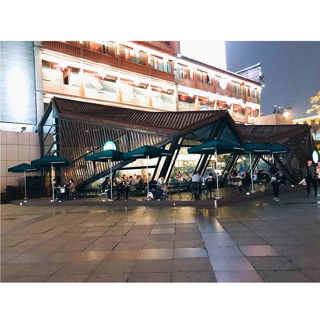 出来发现广场这里有家星巴克,这个装修非常美,可以看到钟鼓楼的美丽的夜景~
