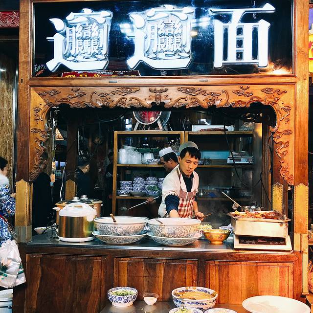 整条街以步行街的方式开放,到处都是回民的叫卖声,有时他们会在你走过他们面前的时候突然大喊,转过头去看他,他们会朝你友善的笑。这里的毕竟是旅游区,所以东西都只能算可以接受,不算好吃。打滴滴的时候,滴滴师傅告诉我们,他们当地人都是去回民街后面那条街吃东西的,那里东西便宜又好吃。所以我们后来很多顿,都在后面的那条街解决了~