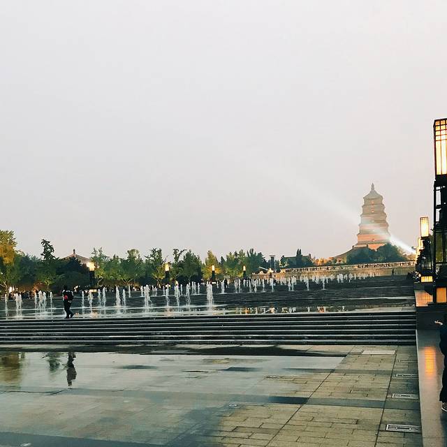 大雁塔有著名的音乐喷泉,到了西安,音乐喷泉不看也要看大雁塔。那就走呗~