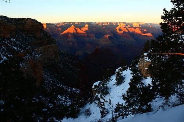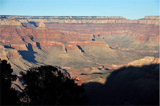 到了大峡谷已是傍晚,有幸见到了大峡谷的落日,斜晖洒落,壮阔而又苍茫。