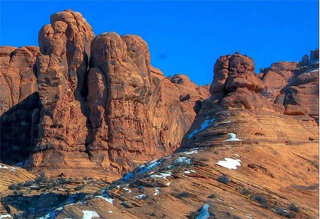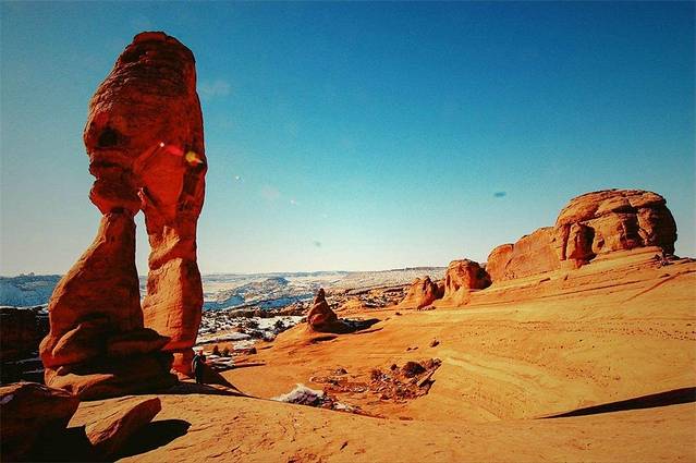 拱门国家公园从颜色上来说有些类似我们国家西北的张掖,因为都是丹霞地貌,但是这里并不是像张掖那样色彩多样,整体呈现赤红一片,有着别样的视觉冲击力,且以很多形似拱门形状而闻名。