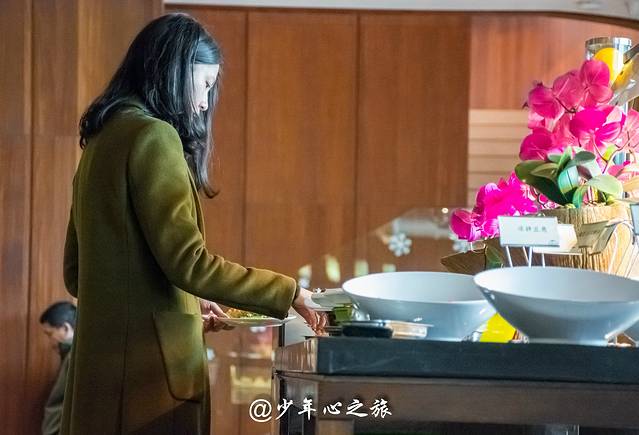 这是办理入住手续的地方,工作人员很快就帮我们办理了入住手续,并详细地跟我们说了一些事宜,不过中午没怎么吃饭,听说这里有下午茶,于是我们寄放行李在前台,奔着下午茶而去。△