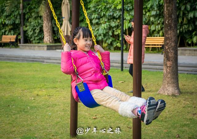 摇晃的吊椅是否唤起你童年的回忆,小朋友那灿烂的笑容里,似乎能看到很多年前自己的影子,仿佛过了一个轮回,以前别人看你玩,现在你看别人玩。△