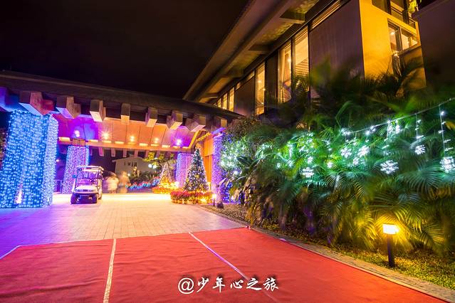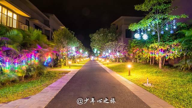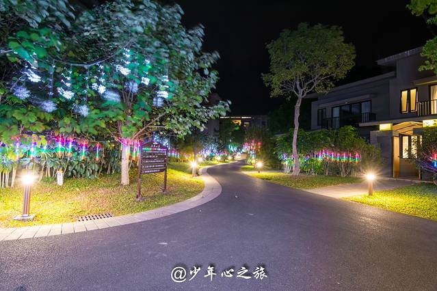 夜晚的南昆山居格外的璀璨夺目,远远望去,仿佛一座色彩斑斓的圣殿。△