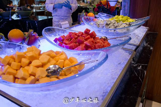 早餐供应时间是到10点,对于我这种喜欢赖床的简直是莫大的福音,自助早餐是含在房费里边的,据说价值98元每位,来试了一下果真不赖,凤爪、金钱肚等早点皆有,简单地放几张图吧。△