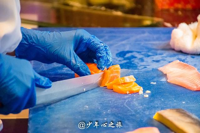 自助晚餐198元每位,扶着墙进来,可以扶着墙出去。△