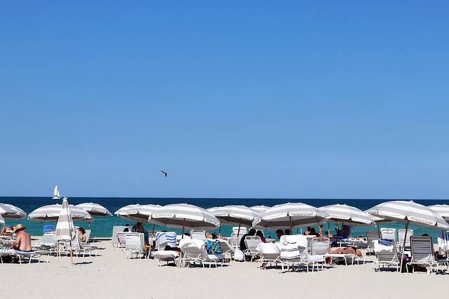 迈阿密海滩租躺椅+阳伞,一天20刀。