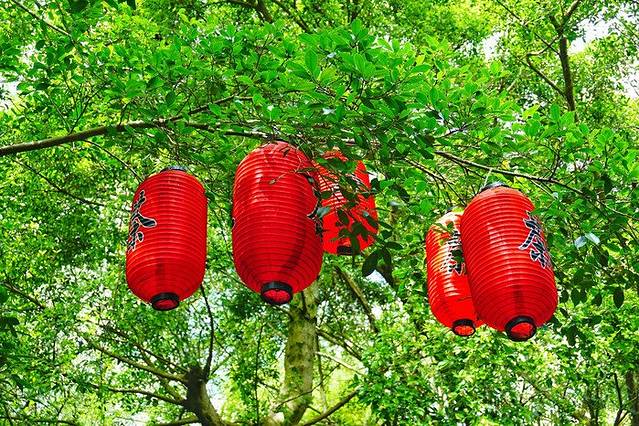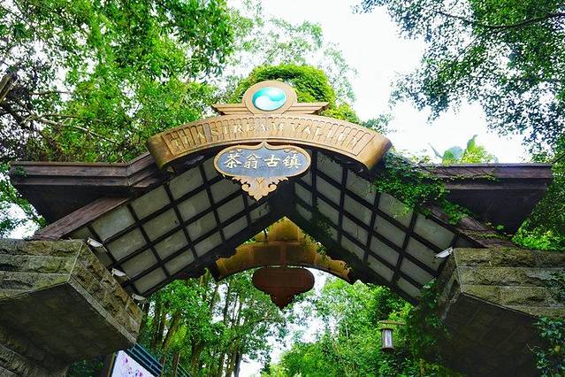 行在暗暗墨青色的青石路上,越过牌坊,即可看见满树的灯笼在叶间林里随风轻摇,右侧茶寮白墙青瓦,岁月斑斓的白墙上刻画的是岁月的痕迹,青石板路被雨湿润后更是滑腻暗沉。往里走,岩石溪流与茶为邻,亭台楼阁错落有致。走在青石板路上,眼观红灯绿叶,耳听溪流鸟鸣,闻着不时飘来一阵自然清新的气息,幽静美好。这种古朴幽雅的环境,不由身心放松心情愉悦,恨不得长留此地。