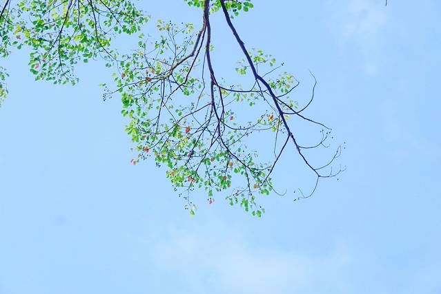 已是初秋,树上的叶子依然是生机勃勃的绿色,初秋的阳光从密密层层的枝叶间透射下来,我微眯着双眼,仰头望向阳光,一切都那么美……