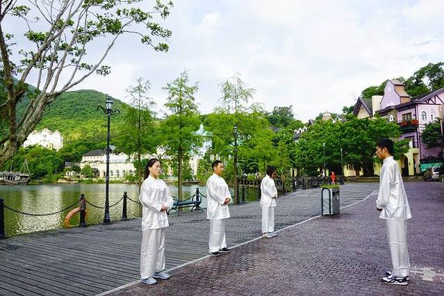 东部华侨城文旅度假小镇包含区域为主题酒店群、茶溪谷、云海谷、大华兴寺,是一座借助于“山水、茶艺、花卉、风情”等多种背景,整合了浪漫茶溪谷、运动云海谷、禅意大华兴寺等多业态资源的山地旅游综合度假区,度假小镇内中西文化交融并兼有“茶、禅、花、竹”等主要元素,让都市人远离喧嚣,从容享受自然。