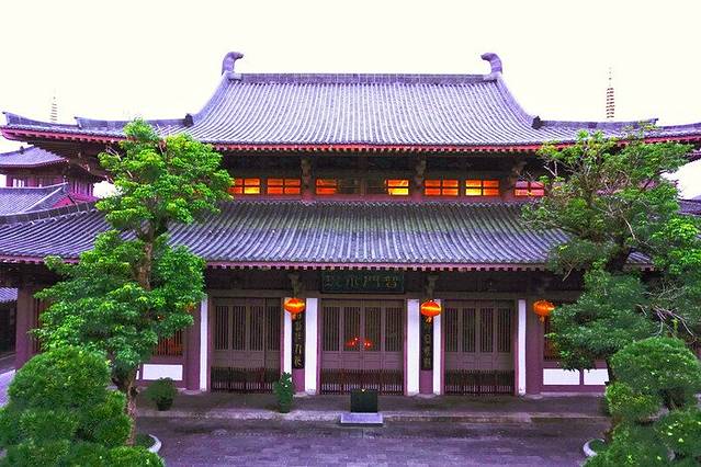 之前,我从未想到这里居然有一处展示中国佛教传统文化之所在,直到我遇见大华兴寺。一进山门,便被眼前这唐宋时期古书院风格的寺庙建筑集群所惊艳,风格浓郁、建筑宏伟,环境却极通幽肃静,大概因为这里是佛门净地吧。