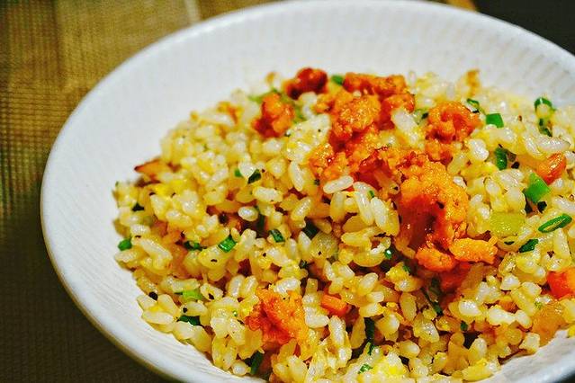 铁板烧海胆炒饭,海胆不能跟米饭在一起炒,要单独处理,先煎到金黄色,在炒饭完成的最后放到炒饭上,这样做更能体现海胆的香味。端上桌光是闻一闻,便使人有一种不可阻挡的食欲,葱花的香气加上鸡蛋与米饭的混合香气以及煎得恰到好处的海胆所散发出来的浓郁香气,让人忍不住勺一大口塞满嘴巴满足味蕾。尝上一口,米饭的软硬程度恰到好处,软嫩的鸡蛋包裹住充满弹性的米饭,多种佐料丰富的层次感让味蕾打开新世界。