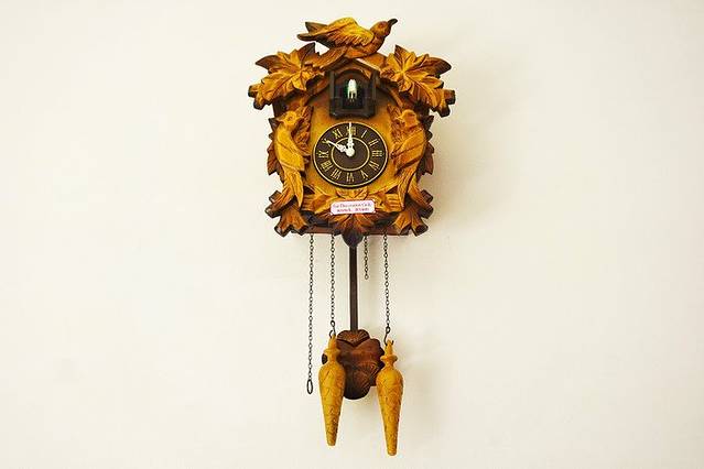 房间内随处可见活泼灵动的小装饰,木雕挂钟上精致的小鸟仿若随时可以展翅,木色的挂钟与白墙相融合,又与天蓝的房间相交错,舒心、宁和。