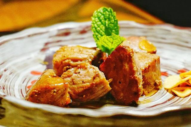 澳洲蒜香牛肉粒,牛肉细嫩,完全没有肉筋及肥肉,汁浓味厚,吃起来香嫩无腥之外,也可感觉到一股牛油经过煎之后所特有的香味,搭配香蒜,层次感恰到好处。