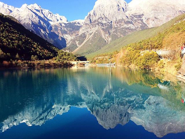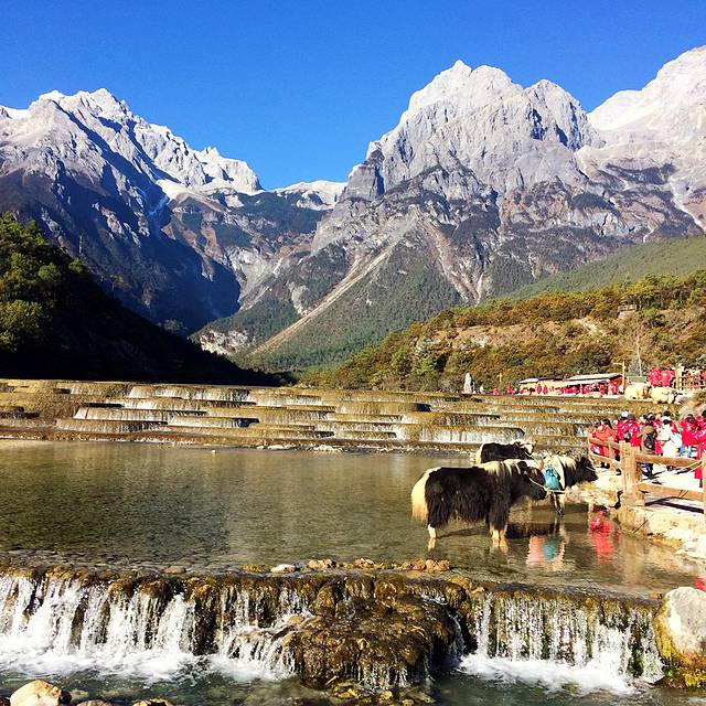 蓝月谷的水很美,很清澈,很蓝。词穷了,描绘不出来,有机会自己亲身体会吧。