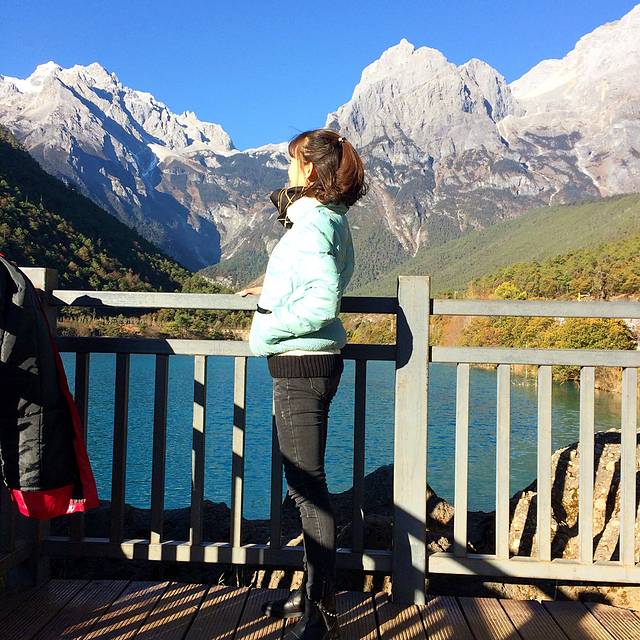 九点钟,我们首先到的玉龙雪山的下面,蓝月谷那里,那边一共有三个景点,蓝月谷,甘海子,白水河。