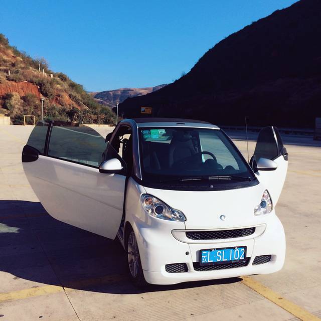 想第二天去洱海,客栈的老板推荐我们报一日团,200人/元,洱海的景点基本都会去,还可以坐一次大游艇;又去了旅行社咨询,大概260元/人。但经过玉龙雪山的一日团后,就不怎么想报团,所以就开始咨询租车情况,旅行社里的smart基本都是电的或是油电混搭,虽然徐肚肚开过油电混搭,但还是不怎么熟悉,在古城逛的时候,满街全是smart的租车信息,所以就随便找了一个打电话咨询,意外的是,竟然全是油的,而且不敞篷的200元/天,敞篷的240元/天,如果不想交押金的话就多交保险钱50元,(押金是1000,如果没有违章的话,2周后还),不管有无违章都不用管了。感觉这个还挺合适的,联系好之后,第二天车主就送到客栈来。