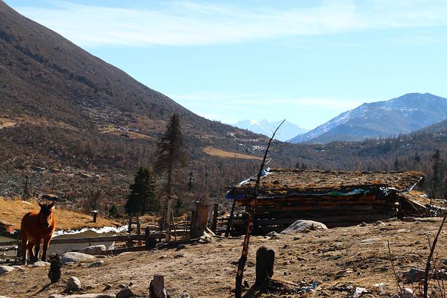 七点半起床,退房,把车放在原地,走到街上找家早餐店吃早餐,步行到桥头,花十块钱买张门票,在桥上徘徊,看着飞奔的大渡河,整理一下思绪,缅怀先烈,憧憬未来。再到街上走走,感受一下慢节奏泸定县城生活。上午九点启程,沿大渡河畔318国道直奔木格措,约一小时抵达康定老城区,离开318沿西大街(一条山路,别有风情)约四十分钟到达景区大门。买票进景区,坐换乘车一路爬升,半小时后到达主景区,在湖边呆呆的坐坐,晒着温暧的太阳,时间仿佛静止,一切烦恼瞬间全无。再沿着前面的草旬一直往上,向着雪山、茶马古道的方向,时光开始倒流,重回历史。原始的牧房,空中回荡的情歌,释放着强烈的异域风情。约一个半小时游览完景点,坐换乘车返回景区大门。开车前行约一公里不到,第一个丁字路口往左拐往机场及新都桥方向。沿途荒无人烟,后视镜里的雪山如一幅幅油画,洁静的空气,湛蓝的天空,让自已有一种莫名的兴奋,想与人分享。一路向西攀升,直达最高点山的垭口海拨四千三千米,无边无际的高山草甸如画一般突然出现在眼前,就在脚下,直到天边,贡嘎雪山在阳光的照射下金光闪烁。翻过垭口一路往下,蓝天白云衬托下的高山草甸让人心旷神怡。一小时半后抵达塔公草原,十块钱门票进去拍了张雅拉雪山的相片,再驻足于几百米外神秘的塔公寺。继续前行往新都桥镇,雄壮的藏房、清澈的溪流、成群的牦牛呈现出另一番不同的藏民族村落图画,让人感叹!无论是塔公寺门口晒太阳的剽悍康巴汉子,还是新都桥沿途能见到的站在路边的美丽的康巴女子,他们的外观是那样让人震撼,足已让人改变如常的审美!新都桥路段不断有招手搭便车的藏族同胞,顺便拉了两个。五点钟左右抵达折多山脚,为看黄昏中的雪山,猛力加油门直冲4300米的折多山垭口。此时已是黄昏,垭口远眺贡嘎群山,说不出来的雄壮与荒凉。乘着夜色一路往下,六点过抵达雪山下的康定新城。吃饭,找酒店住下。