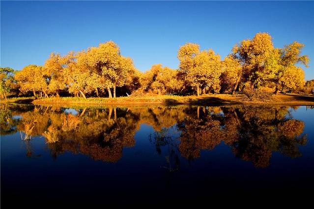 轮台胡杨林是中国最美的十大森林之一,大面积的胡杨林与河流、沙漠、戈壁、