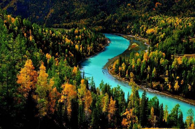 除了喀纳斯的三大景区,路上的景区--五彩滩,也是必去的景点。