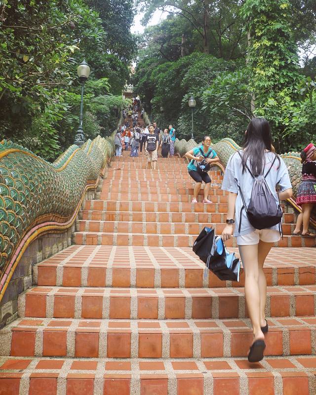 提前在网上查了一下,上双龙寺的路非常弯非常陡,如果技术不好的话,还是不要自己骑摩托比较好。最好的方法是先坐双条车到清迈大学,然后再坐双条车上双龙寺。我在地图搜了一下路线,看着都觉得很多弯,所以就选择了开摩托到清迈大学门口,再坐双条车上双龙寺。