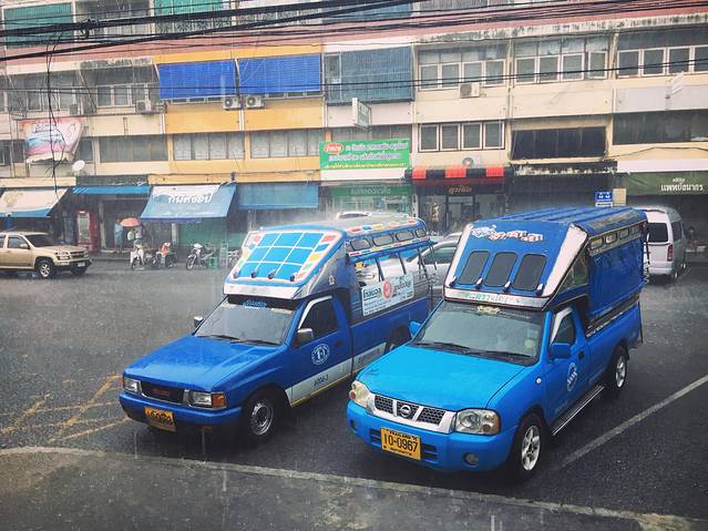 在泰国遇上的第一场暴雨,一下就下了半个多小时,真的很佩服老天爷,都不带喘个气的,厉害了我的天。