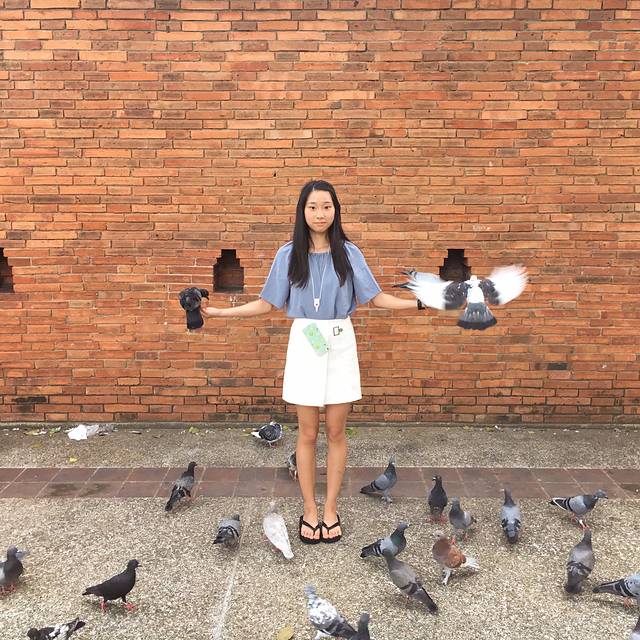 塔佩门的鸽子!这里是禁止喂食的,但是会有一些小贩偷偷地卖饲料,20B一包。我一开始超怕鸽子,鸽子一来我就跑,真的是超丢脸的,旁边的小孩子都比我勇敢。。。后来白告诉我不用怕,他们不会怎样的,打开手就OK了~~慢慢的我就敢喂了,就是那个爪子划到手臂还是会有点痛的。