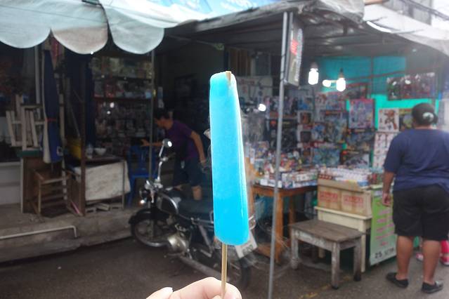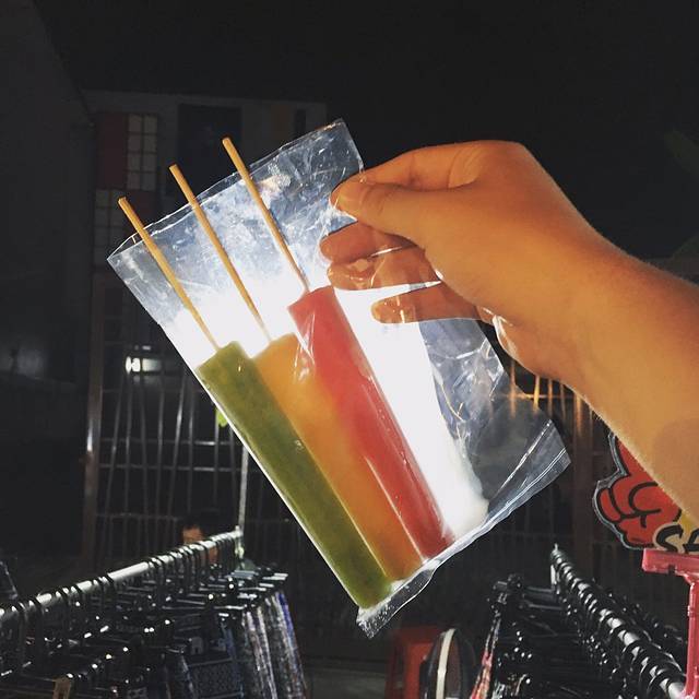 周六夜市好多人,白看到他心心念的冰棒,迫不及待就买了,但是这次没有水上市场的好吃~