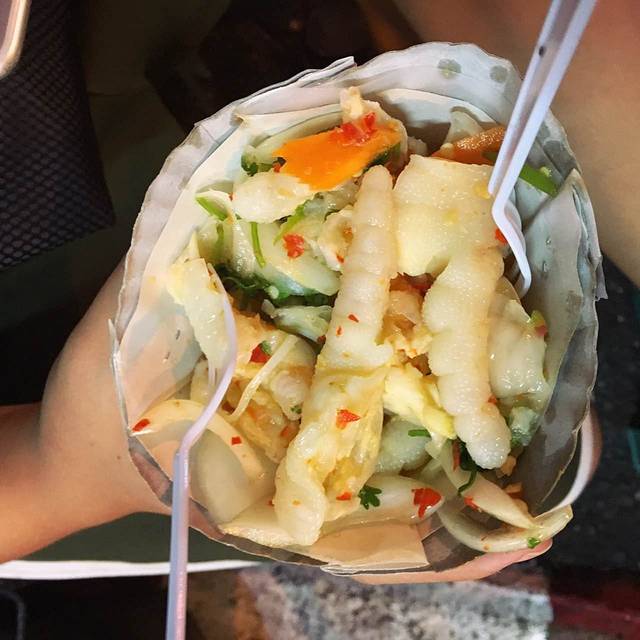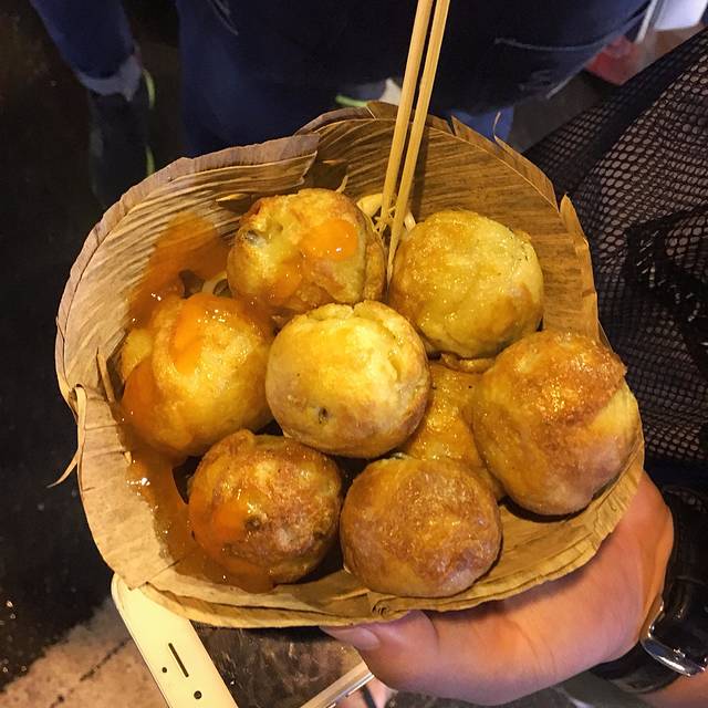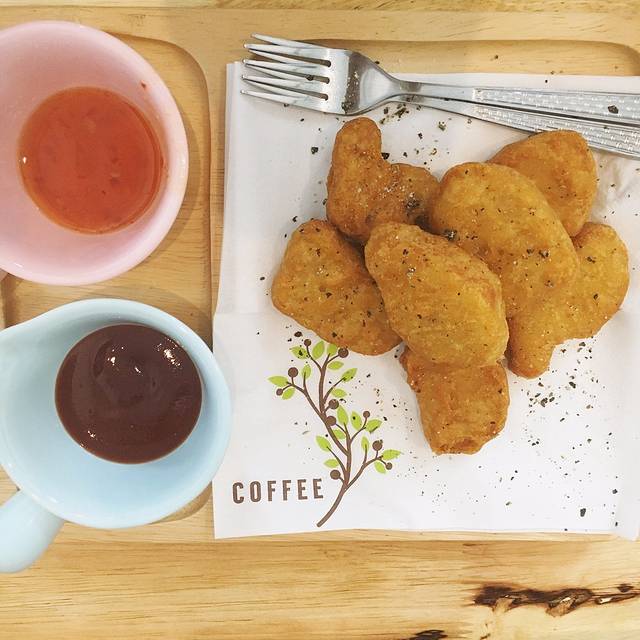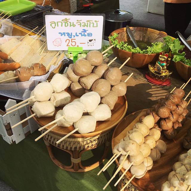 11点就要退房了,但是我去拜县订的是1点半的车。所以我们11点退房之后,就在民宿坐了一小时,然后出去换了泰铢,在ATM取钱加起来一共收了60多块的手续费,我的心真的好痛!!!然后逛了一下附近,买了炸丸子吃,配上泰国独特的酱,味道好棒~