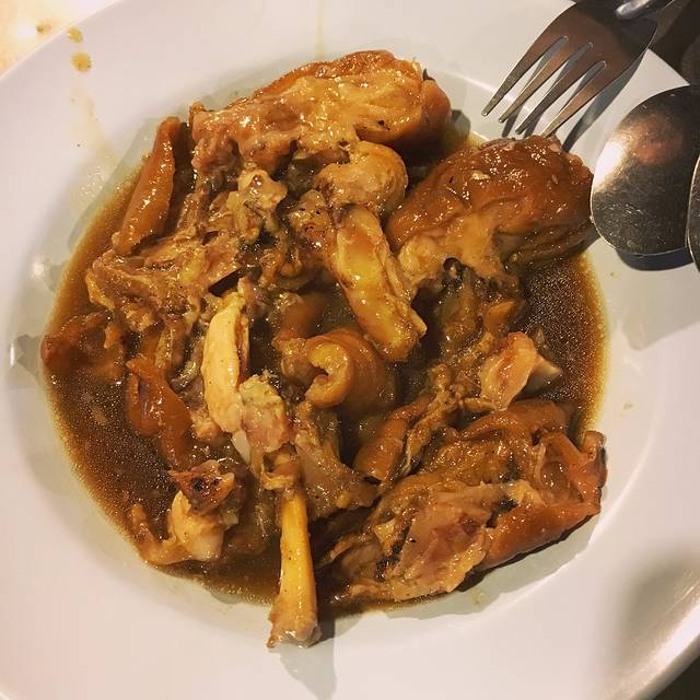 走了一半的夜市吧我就走不动了,因为觉得跟周六夜市差不多,就想着去找凤飞飞猪脚饭。一开始我还以为在塔佩门那边,谁知道在古城的北边。。。当时已经九点了,不知道关门没有,抱着忐忑的心去找凤飞飞,当时古城的人估计都去夜市了,路上都没几个人,好冷清啊,走了十多分钟才到,还好没关门~要了一个猪脚加一碗米粉,一共12块。当时白吃的第一口就觉得好好吃,然后说要打包一个回去吃,他就跟服务员说再要一个猪脚打包。然后白吃完之后说好饱啊,我就说我看你打包那个猪脚怎么办,然后白吃完就找另一个服务员买单,马上逃走。。。真的好傻逼了。。。