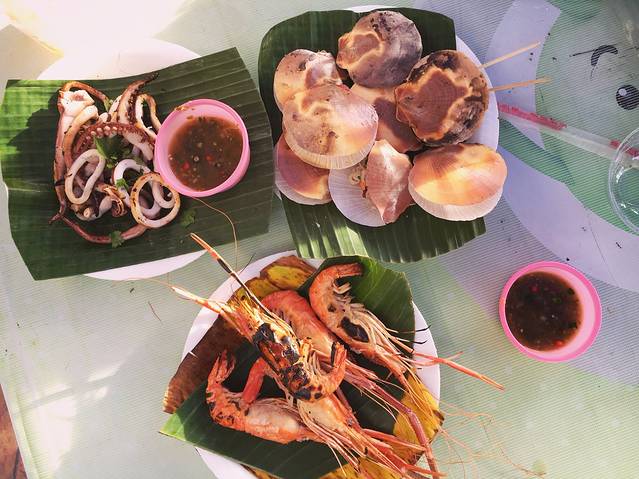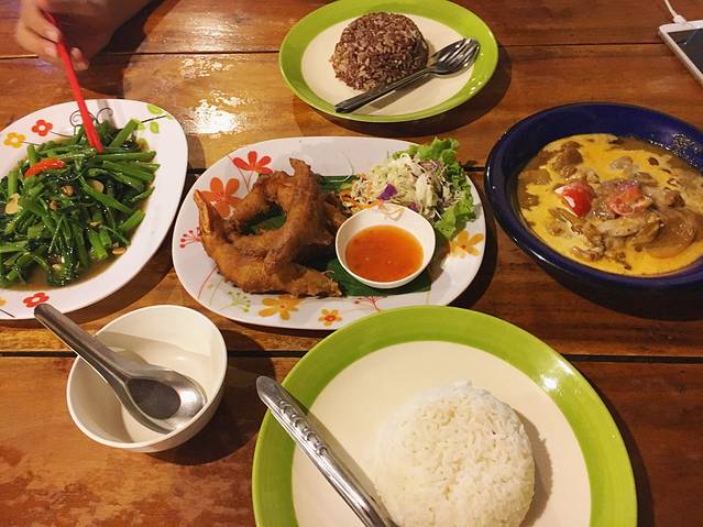 回到酒店放下摩托车,坐酒店的车去拜县中心吃晚饭,去了酒店老板推荐的餐厅,真的好好吃~餐厅叫“Na’s kitchen” 不贵但是味道很好,通心菜才60B!