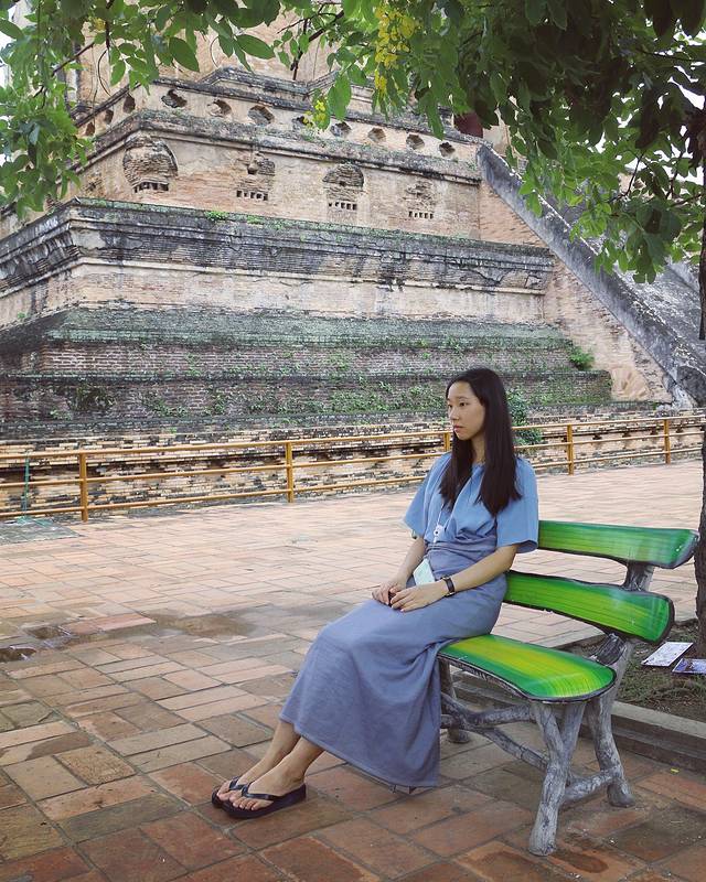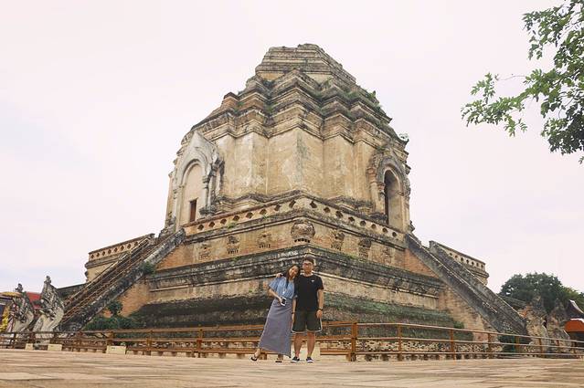 换完泰铢就去了契迪龙寺,门票40B一人。我当时穿的是短裙,就去门口旁边给了100B的押金,然后给我套上了一条长裙,我觉得还挺好看的嘛,哈哈。