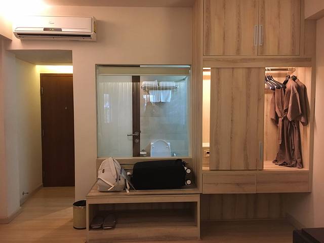 酒店位于暹罗中心,步行暹罗广场大约15分钟吧,但是酒店附近都很塞车,从早塞到晚的那种。房间设施还行,热水是八家酒店里面最猛的。走出来就有711,买啥都方便。