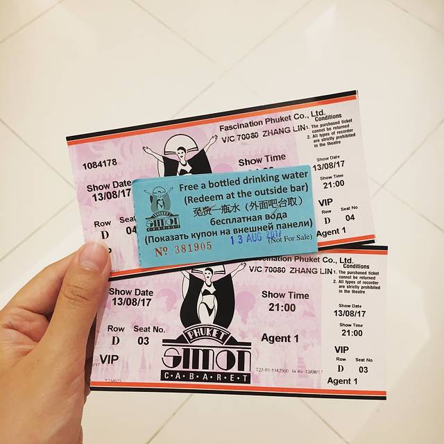 VIP门票一人¥48,芭东海滩接送一人¥25。座位是第四排靠左边,位置还行,坐第一排有可能被人妖请上舞台哦。之前看到有游记说西蒙人妖秀外面的车都特别坑人,都是宰游客的,所以我就定了接送。