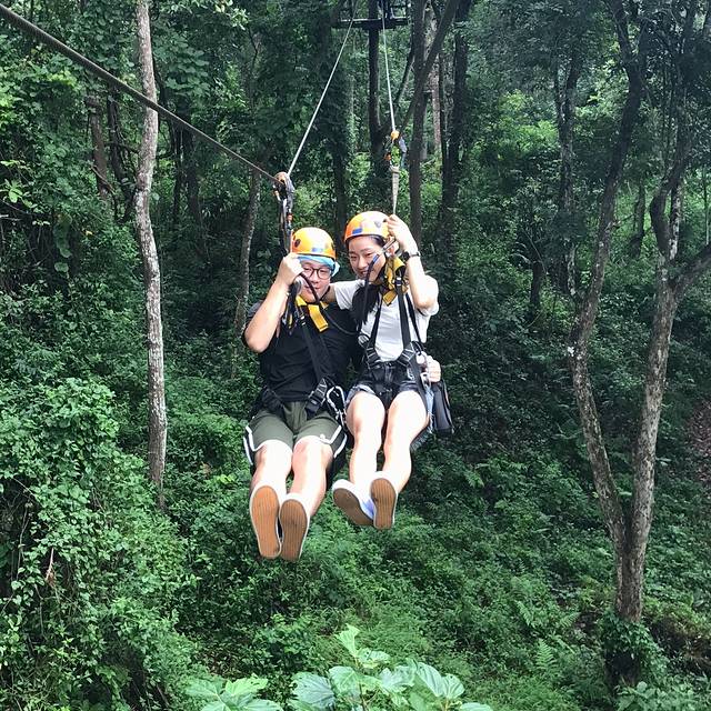 选了丛林过湖的,不贵但是也能玩到挺多的项目的,而且这个离市中心很近,大概坐二三十分钟的车就到了。我选的是上午场,只有四个人玩,包了整个森林啦。教练还是挺照顾我们的,一路上帮我们拍照。结束之后还有自助餐可以吃,味道还过得去。记得不要穿短裤和浅色衣服去。丛林过湖一人¥168