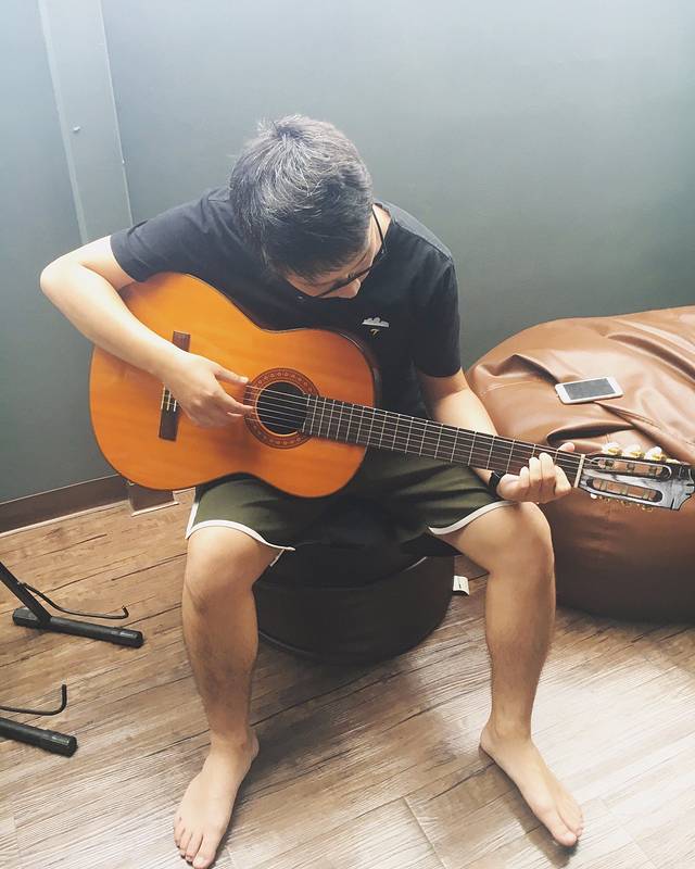 两点回民宿入住,白看到吉他就忍不住想秀一下了。接着我录了个视频他就一直出错,真的是,太菜了