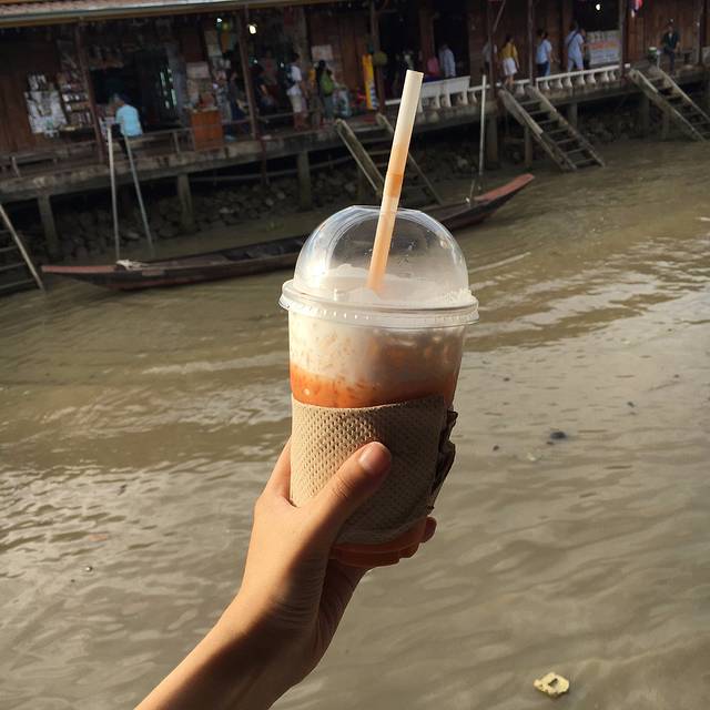 点了一杯抹茶牛奶和一杯泰式奶茶,这次的泰式奶茶没那么甜了。