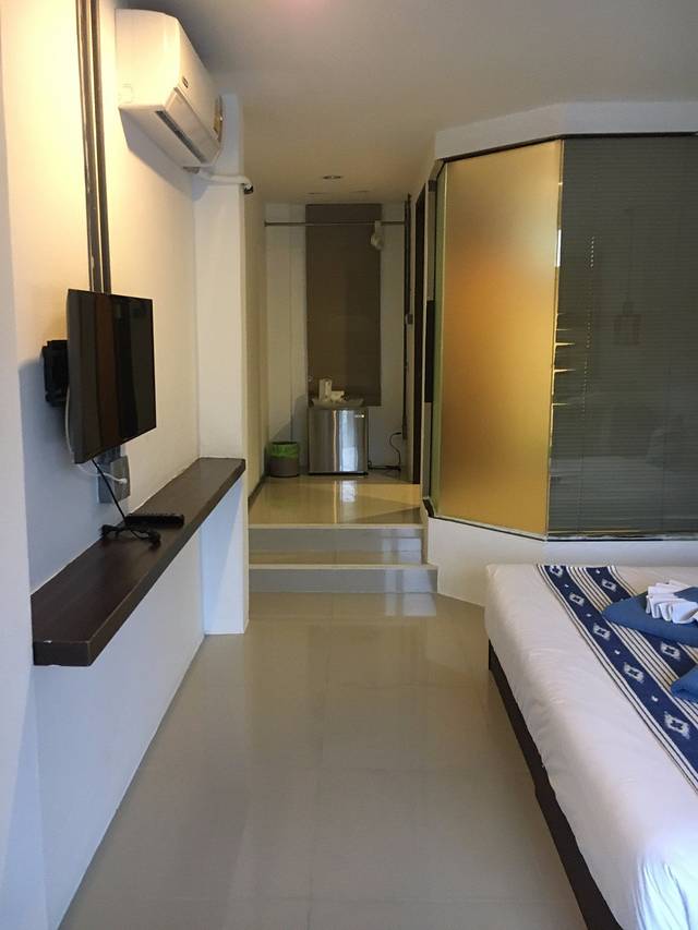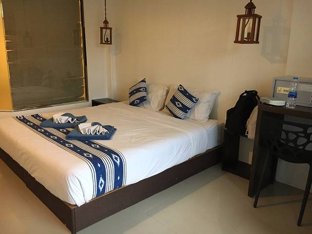 这个民宿还是挺喜欢的,前台小姐姐好热情,每次看到我们都会打招呼。入住需要给一千的押金,而且一定要在11:00退房,通常其他都是规定12:00退房的啊。房间还是挺小的,行李箱一打开,感觉房间都没路走了,不过有个小阳台,但是,这个民宿的规定是在阳台也不可以吸烟的,吸烟的话要罚两千泰铢。二楼还有个小小的娱乐区,有吉他,有桌游。第二天早上有早餐,味道还行。