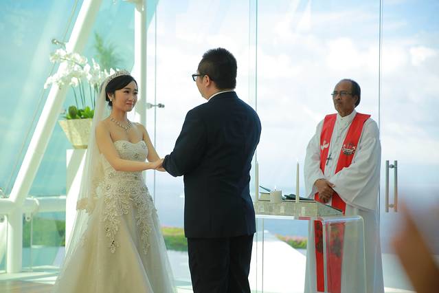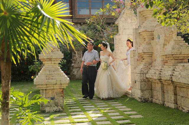 我的老公是个非常踏实靠谱的男人,因为这也是让我这个以为自己会很晚才结婚的人能这么安心的出嫁的原因啦,我和老公是高中同班同学,也是同桌啦那时候两个人就心生情愫,只是种种原因并没有走到一起,之后一直是好朋友,然后就是大学的时光,在大三的时候他选择了去美国进修,三年的留学时光也让他成熟了许多,然后他选择回到了我们这个东北的小城市,这也许就是缘分吧,我们两个人走到了一起,这是我认为这辈子最美好的事情选择婚礼目的地是个漫长的过程,最终我们选择了巴厘岛,因为之前有朋友在这里举办过婚礼,而且这里举行婚礼确实比较成熟,有很多选择,形式多样,可以选择神圣浪漫的教堂婚礼,阳光清新的沙滩婚礼,高端大气的别墅婚礼... 选择了巴厘岛暖端的水之教堂,其实从第一眼看到这个白色的教堂,我就爱上了它,第一眼的感觉很重要的,对比一圈最后还是选择了第一眼看上的水之教堂,水之教堂给我的感觉,就是清新淡雅的造型,不禁让我特别的憧憬,我想,在这么美的地方许下我们两个人一生的诺言,那真的是我们这辈子最最浪漫的事情了。