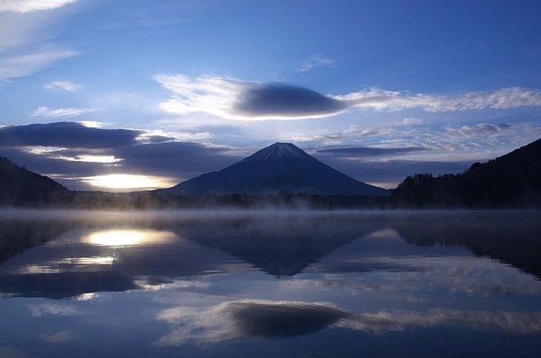 便可以将湖水的柔与富士山的刚完美结合,湖水的表面映照出富士山的倒影,再配上几朵的云彩,能呈现出非常具有吸引力的作品。