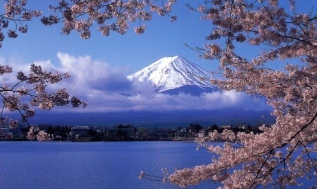 到了樱花盛开的时节,可以将樱花作为前景,拍摄河口湖与富士山,景色迷人壮观。