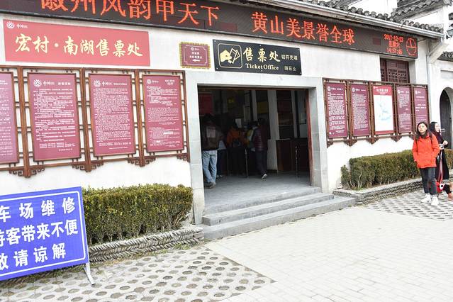 到这里买票如果你想要买学生票但是拿的是假学生证,对不起你是买不了的,售票人员会提示你到旁边开一个证明,所谓的证明就是要登陆你的的学信网查看一下学籍是否是本科及以下学历,如果不是对不起了全票104元/人,前几年好像还是80元/人。买完票旁边就是进口处,工作人员会提示你,票3天有效,3天之内拿着你的身份证和票可以随时进出宏村。