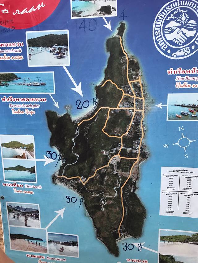 从芭堤雅码头坐船大概40分钟可以到达格兰岛。格兰岛挺大的,岛上有酒店可以留宿。岛上有多个beach,需要通过tuktuk到达。经过一番比较,我们选了海水相对清澈,路途相对远的Samae beach。