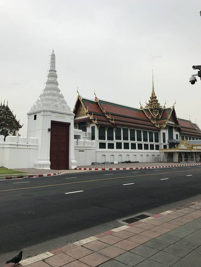 打了一辆Uber来到大皇宫。从大皇宫外围望见金碧辉煌的屋顶,透露出大皇宫的豪气。整洁的路面,几只和平鸽飞来觅食,却又不失它的庄重和亲和。