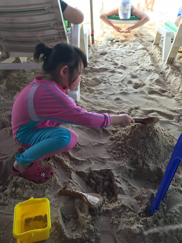 正巧遇见来自广西的小妹妹。一起来挖沙吧。