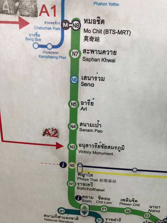 曼谷的BTS(当地人也称为sky train)比较方便,因此定的酒店是靠近BTS站的。机场坐A1巴士到Mo chit,再打的或BTS到Sanam Pao,挺方便的。