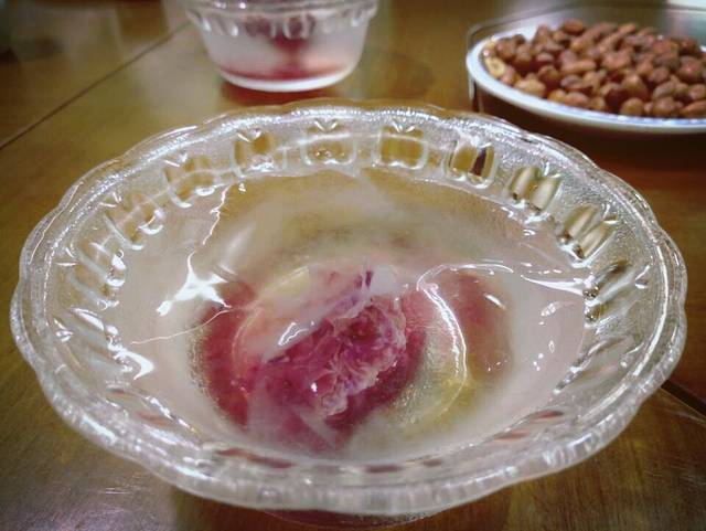 玫瑰冰粉,吃之前把它拌匀,滑滑的冰粉带着淡淡的玫瑰香味划入口中,真的是唇齿留香。